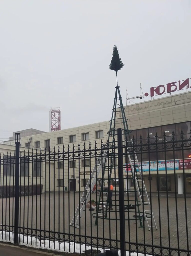 🌲 У ДК Юбилейный началась установка Новогодней Ёлки